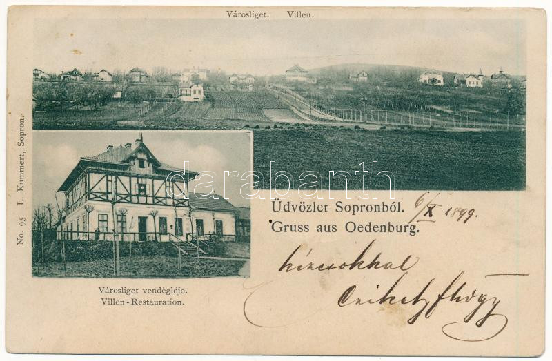 1899 (Vorläufer) Sopron, Oedenburg; Városliget és vendéglő / Villen Re... https://www.darabanth.com/hu/446-Gyorsarveres/446.0/Kepeslapok/Magyarorszag~2000006/1899-Vorlaufer-Sopron-Oedenburg-Varosliget-es-vendeglo-Villen-Restauration-L-Kummert-No~II2948399