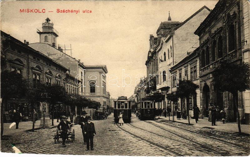 1910 Miskolc, Széchenyi utca, villamosok. W. L. Bp. 6185. (felszíni sé... https://www.darabanth.com/hu/446-Gyorsarveres/446.0/Kepeslapok/Magyarorszag~2000006/1910-Miskolc-Szechenyi-utca-villamosok-W-L-Bp-6185-felszini-serules-surface-damage~II2951574