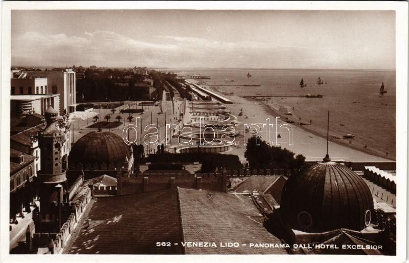 Venezia, Venice; Lido, Panorama dall'Hotel Excelsior / hotel, beach https://www.darabanth.com/hu/446-Gyorsarveres/446.0/Kepeslapok/Olaszorszag~2000074/Venezia-Venice-Lido-Panorama-dallHotel-Excelsior-hotel-beach~II2945897