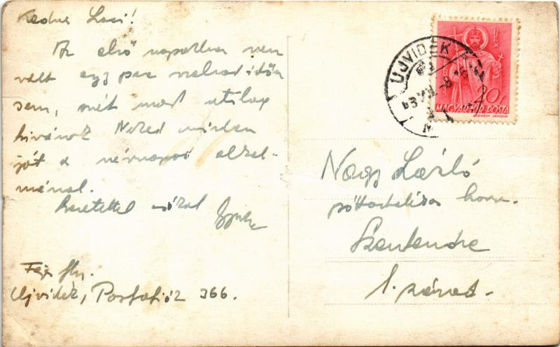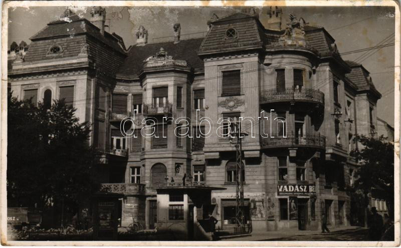 Leírás: 1943 Újvidék, Novi Sad; utca, Vadász Béla üzlete / street view, shop. photo (szakadás / tear)