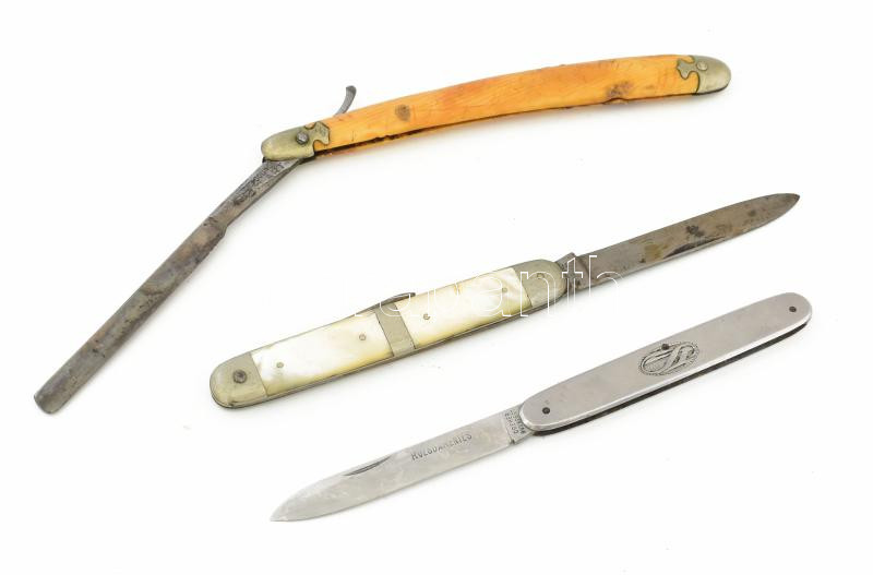Leírás: 3 darab antik bicska, közte Solingen, Dreher, közte gyöngyház berakással