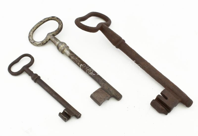 Leírás: 3 darab antik kulcs, h: 11,5-18 cm