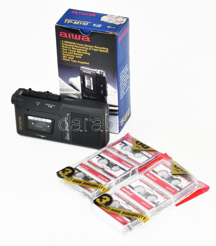 Aiwa TP-M110 diktafon, Sony kazettákkal, használatlan https://www.darabanth.com/hu/446-Gyorsarveres/446.0/Mutargy-papirregiseg-egyeb/Bolhapiac~500014/Aiwa-TP-M110-diktafon-Sony-kazettakkal-hasznalatlan~II2954137