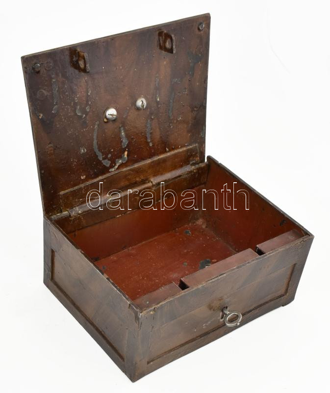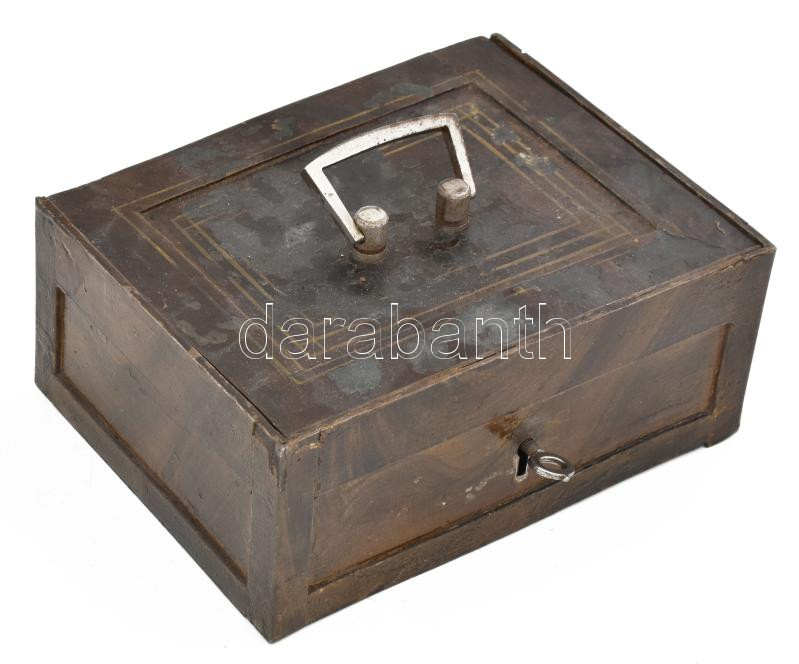 Antik vas széf, kopással, kulccsal, 21x16x9 cm https://www.darabanth.com/hu/446-Gyorsarveres/446.0/Mutargy-papirregiseg-egyeb/Bolhapiac~500014/Antik-vas-szef-kopassal-kulccsal-21x16x9-cm~II2947746