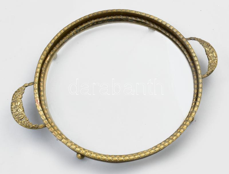 Leírás: Bronz kínáló, üvegbetéttel, kopással, d: 19 cm