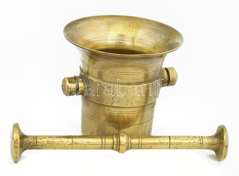 Bronz mozsár, törővel, oldalán felirattal, m: 12 cm, törő h: 23,5 cm, ... https://www.darabanth.com/hu/446-Gyorsarveres/446.0/Mutargy-papirregiseg-egyeb/Bolhapiac~500014/Bronz-mozsar-torovel-oldalan-felirattal-m-12-cm-toro-h-23-5-cm-polirozva~II2953087
