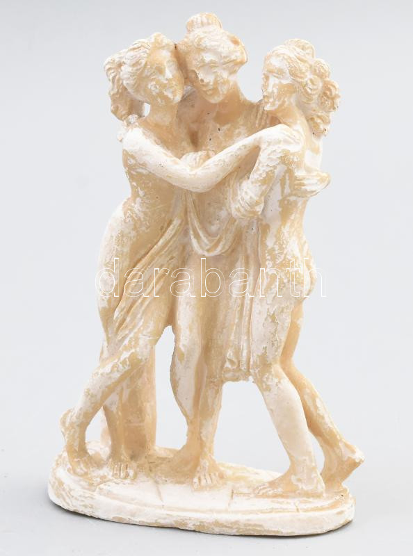 Leírás: Három hölgy, faragott kő, kopással, m: 13,5 cm