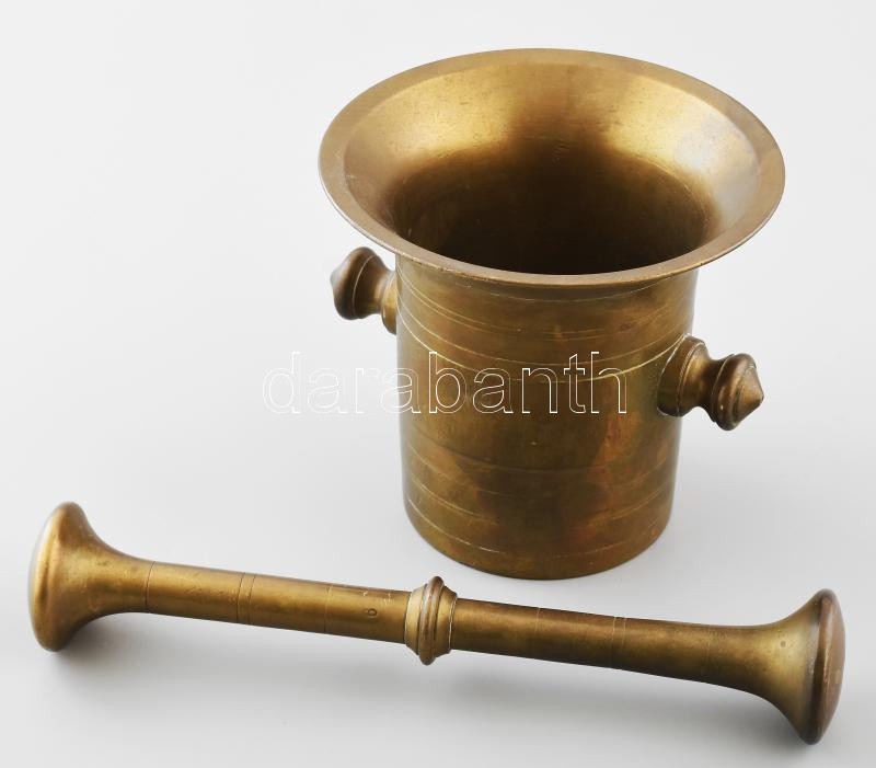 Nagyméretű réz mozsár, törővel, m: 14 cm, h: 26,5 cm https://www.darabanth.com/hu/446-Gyorsarveres/446.0/Mutargy-papirregiseg-egyeb/Bolhapiac~500014/Nagymeretu-rez-mozsar-torovel-m-14-cm-h-26-5-cm~II2954508