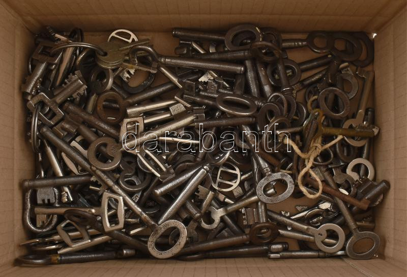 Leírás: cca 130 darab régi kulcs, közte érdekes darabokkal