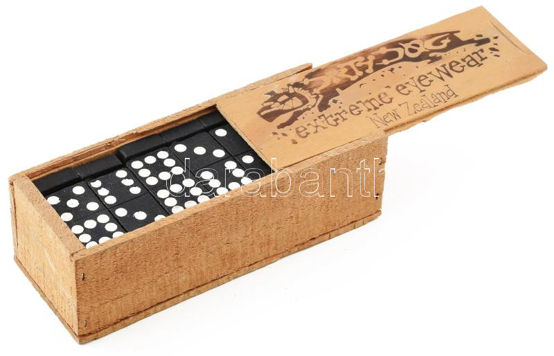 Dominó készlet, festett fa, kissé sérült fadobozban, 17x7x5,5 cm https://www.darabanth.com/hu/446-Gyorsarveres/446.0/Mutargy-papirregiseg-egyeb/Jatekok~500015/Domino-keszlet-festett-fa-kisse-serult-fadobozban-17x7x5-5-cm~II2947752