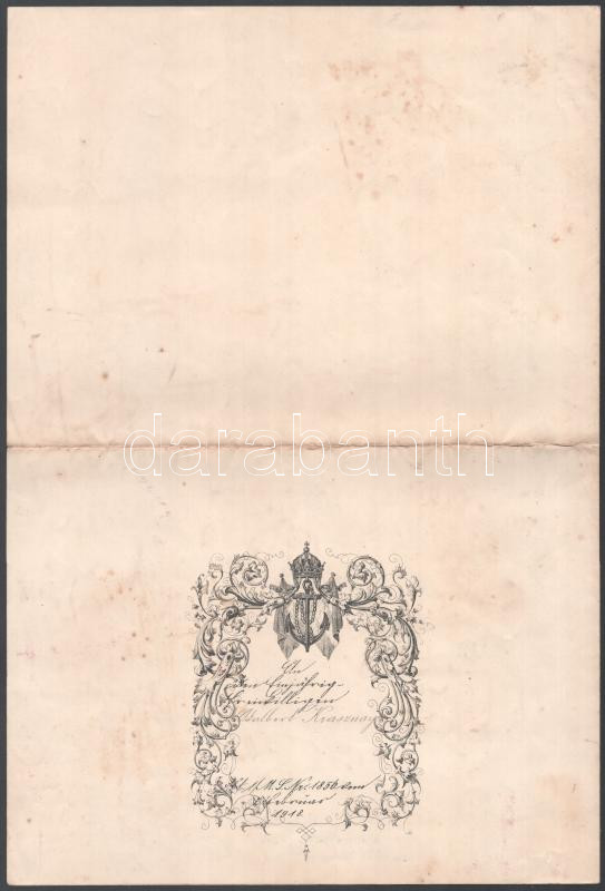 1918 Haditengerészeti kinvevezés Krasznay Béla tartalékos zászlósnak. Ottokar Schubert (1865-1975) ellentegernegy aláírásával, szárazpecséttel /