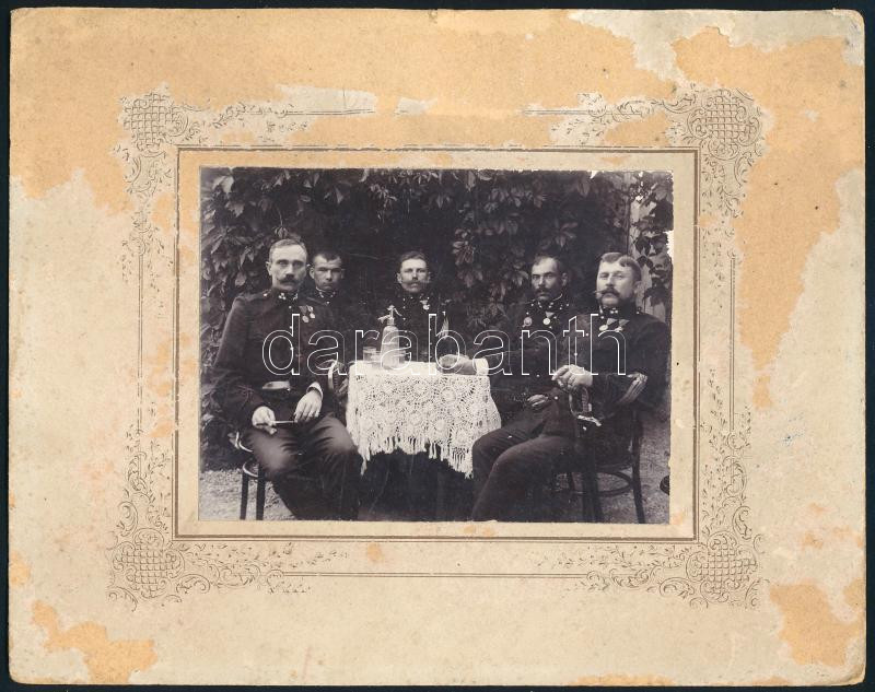 cca 1900 Katonai csoportkép, közte egy csendőr, kopottas állapotban, 8... https://www.darabanth.com/hu/446-Gyorsarveres/446.0/Mutargy-papirregiseg-egyeb/Militaria~1000001/cca-1900-Katonai-csoportkep-kozte-egy-csendor-kopottas-allapotban-8-5C39711-cm~II2948305