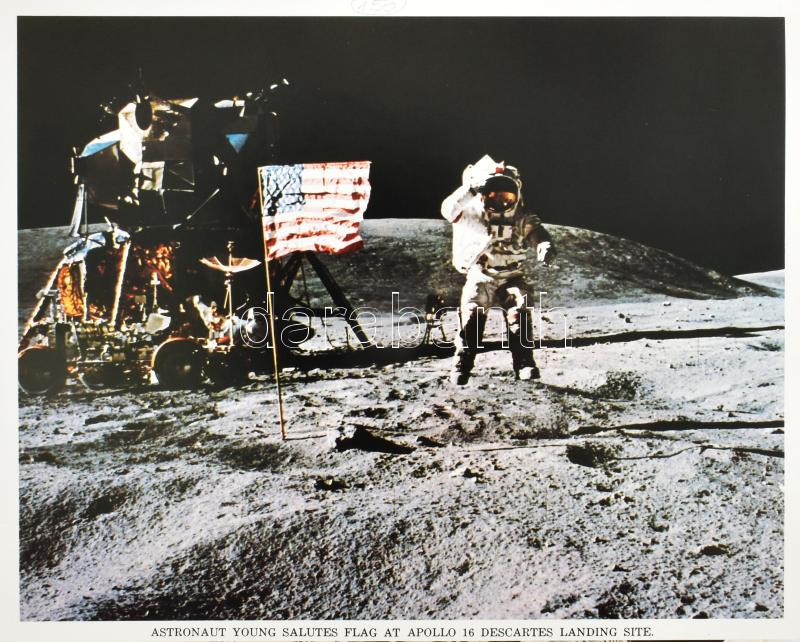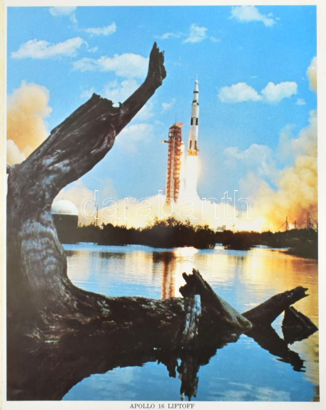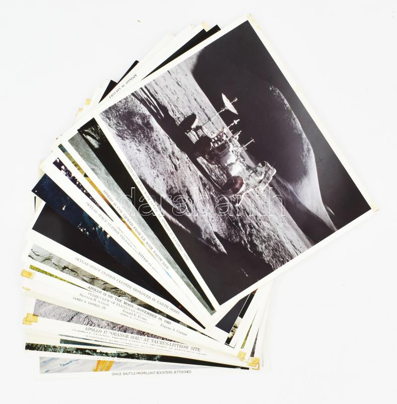 cca 1970-1980 NASA fotónyomatok, főként az Apollo-program során készült felvételekről (holdra szállás, űrhajók, rakétakilövés, stb.), összesen 35 db, a hátoldalon angol nyelven feliratozva, vegyes állapotban (egy részükön hátoldali ragasztásnyomok), 25x20 cm körüli méretben / cca 1970-1980 NASA photo prints, mainly about the Apollo program (moon landing, spacecraft, rocket launch, etc.), 35 pcs in total, in mixed condition