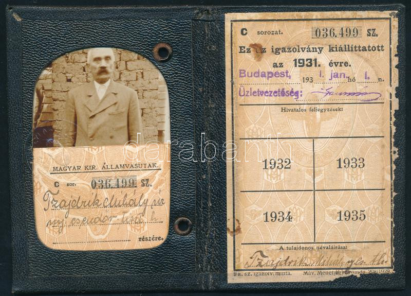 1931 MÁV félárú jegy vásárlására jogosító arcképes igazolvány nyugalma... https://www.darabanth.com/hu/446-Gyorsarveres/446.0/Mutargy-papirregiseg-egyeb/Okmanyok~500020/1931-MAV-felaru-jegy-vasarlasara-jogosito-arckepes-igazolvany-nyugalmazott-csendor-res~II2948332
