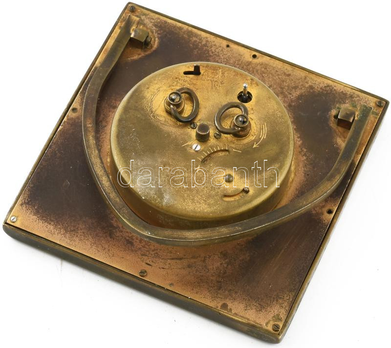 Leírás: Antik rézházas támasztós asztali óra, nem jár, sérüléssel, 10x10 cm, m: 9 cm
