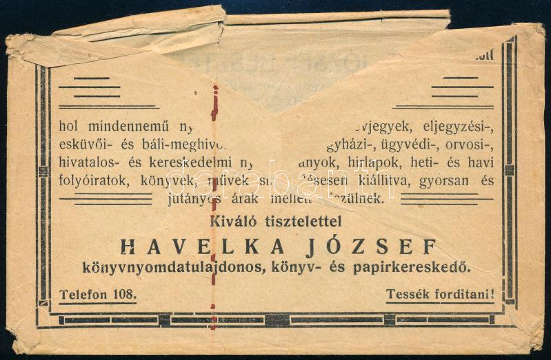 Havelka József Könyvnyomda Besztercebánya fejléces boríték, megviselt ... https://www.darabanth.com/hu/446-Gyorsarveres/446.0/Mutargy-papirregiseg-egyeb/Reklam~500024/Havelka-Jozsef-Konyvnyomda-Besztercebanya-fejleces-boritek-megviselt-allapotban~II2951754