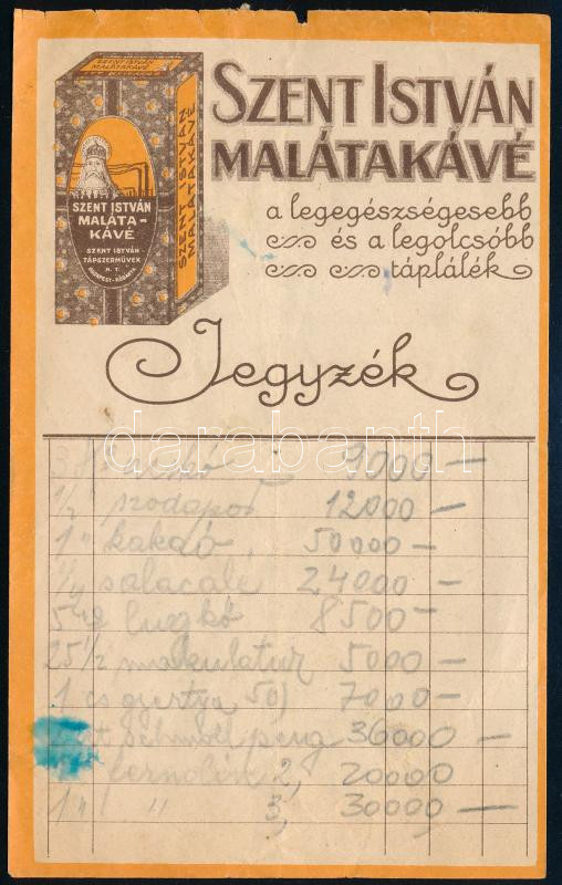 Szent István malátakávé jegyzék https://www.darabanth.com/hu/446-Gyorsarveres/446.0/Mutargy-papirregiseg-egyeb/Reklam~500024/Szent-Istvan-malatakave-jegyzek~II2953472