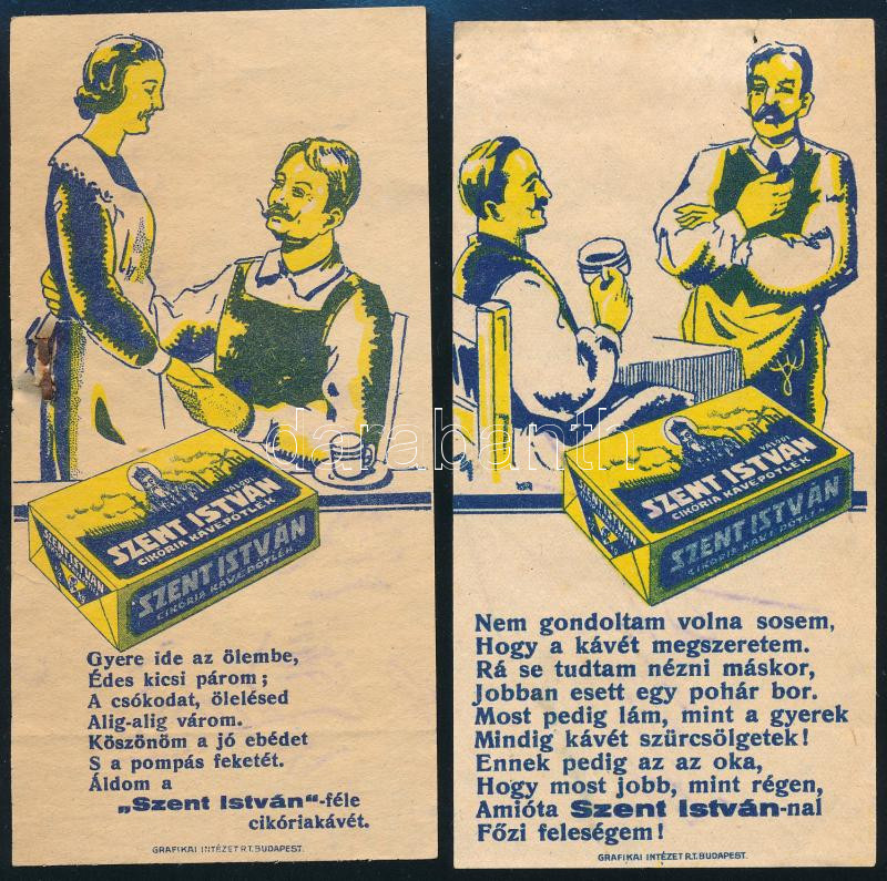 cca 1930 2 db Szent István cikóriakávé számolócédula https://www.darabanth.com/hu/446-Gyorsarveres/446.0/Mutargy-papirregiseg-egyeb/Reklam~500024/cca-1930-2-db-Szent-Istvan-cikoriakave-szamolocedula~II2953442