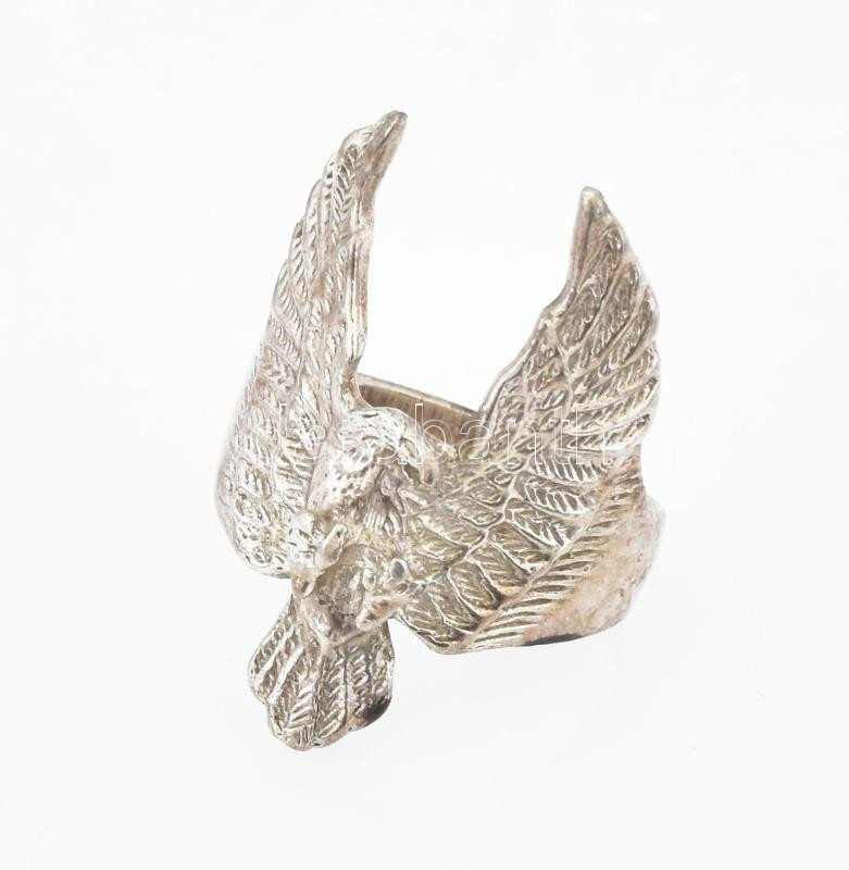Ezüst(Ag) madaras gyűrű, jelzett, kis deformációval, méret: 62, nettó:... https://www.darabanth.com/hu/446-Gyorsarveres/446.0/Nemesfem-disztargyak-ekszerek-dragakovek/Nemesfem-disztargyak-ekszerek-dragakovek~2000432/EzustAg-madaras-gyuru-jelzett-kis-deformacioval-meret-62-netto-10-g~II2954560