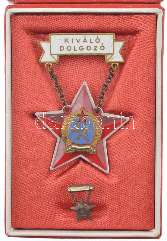 Leírás: ~1950. "Kiváló Dolgozó" Rákosi-címeres zománcozott kitüntetés, eredeti tokban T:XF