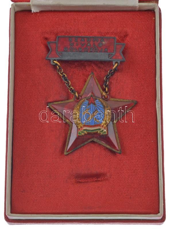 Leírás: ~1950. "Szakma kiváló dolgozója" Rákosi-címeres zománcozott kitüntetés hátoldalán "87627" sorszámmal, eredeti tokban T:XF