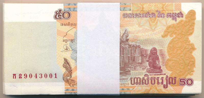 Leírás: Kambodzsa 2002. 50R (100x) sorszámkövetők, kötegelővel T:UNC,AU Cambodia 2002. 50 Riels (100x) consecutive serials, with wrapper C:UNC,AU Krause P#52