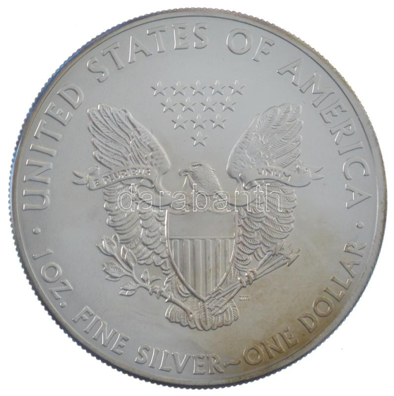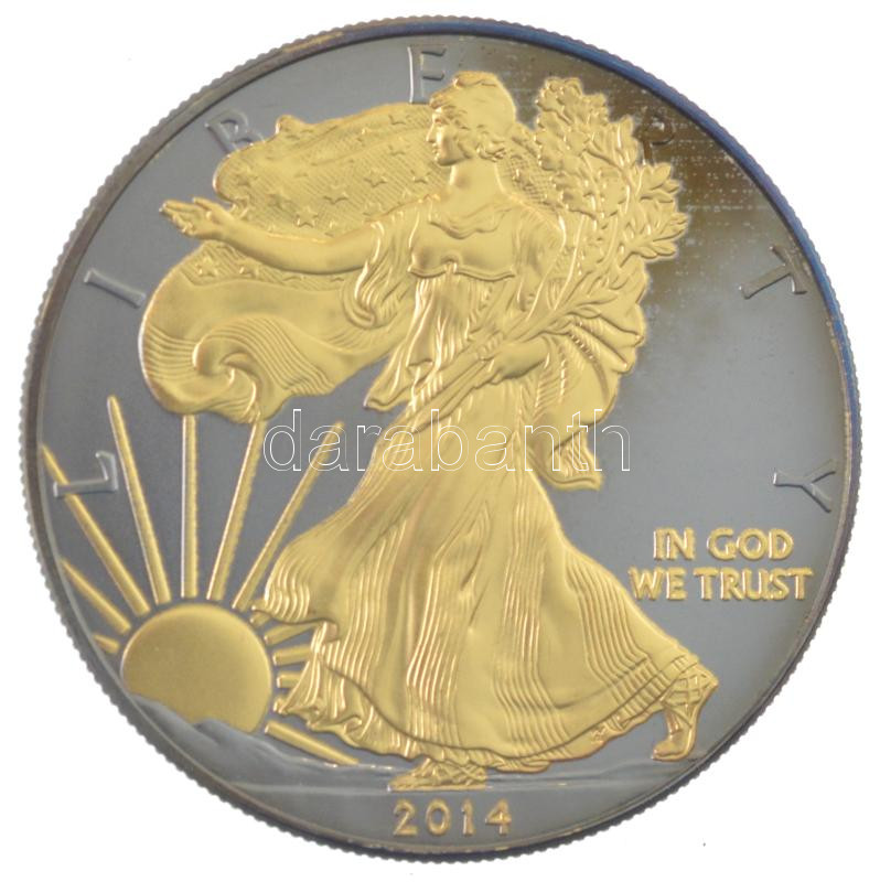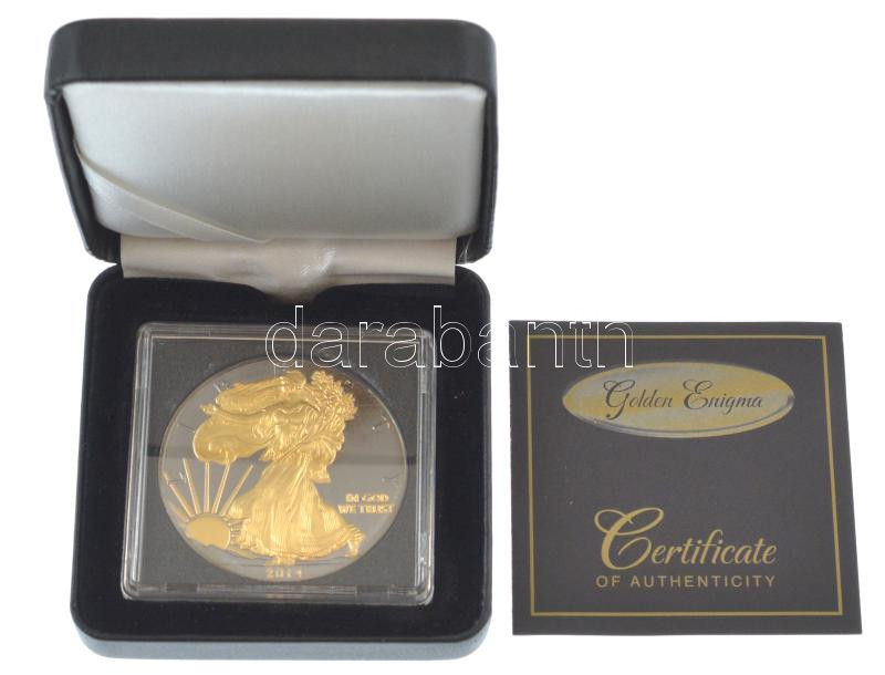Amerikai Egyesült Államok 2014. 1$ Ag "Ezüst Sas" ruténiummal és arannyal színezett, dísztokban, tanúsítvánnyal T:UNC patina USA 2014. 1 Dollar Ag "Silver Eagle" colored with Ruthenium and partially gilt, in display case with certificate C:UNC patina