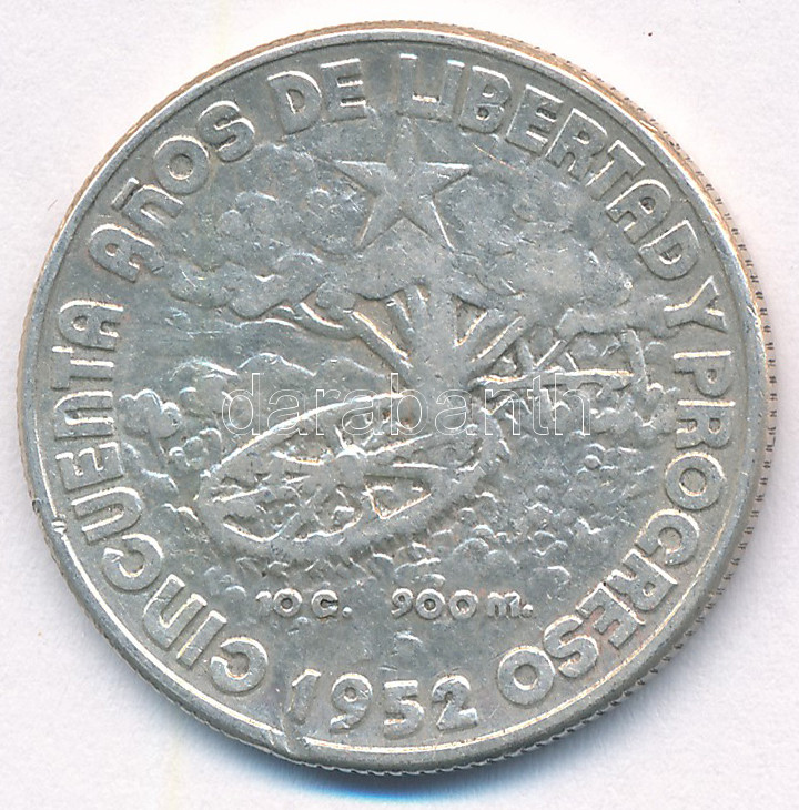 Cuba 1952. 40 Centavos Ag "50th Anniversary of the Republic of Cuba" C:VF small ding