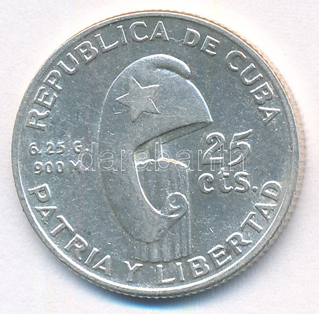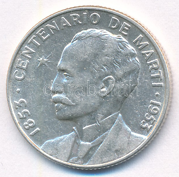 Cuba 1953. 25 Centavos Ag "Centennial - Birth of Jose Marti" C:XF small scratch