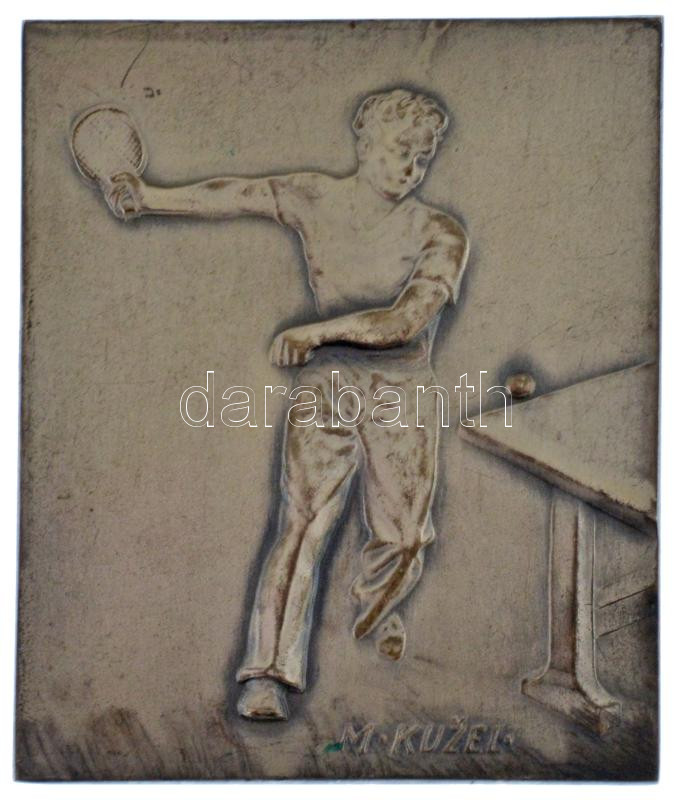 Leírás: Csehország DN "Asztalitenisz (pingpong)" ezüstözött bronz emlékplakett. Szign.:M Kuzel (60x50mm) T:XF kopott ezüstözés