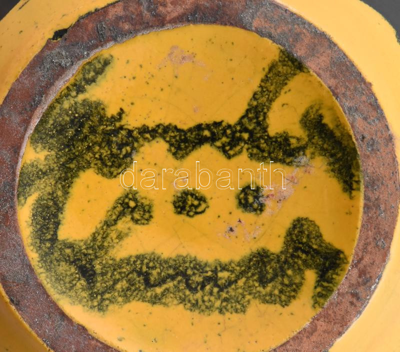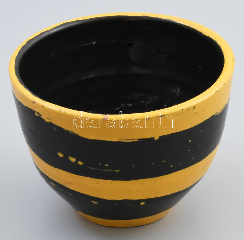 Leírás: Gorka Lívia (1925-2011): Fekete-narancs kaspó, festett mázas kerámia, jelzett, kis mázhibákkal, m: 11 cm, d: 14 cm