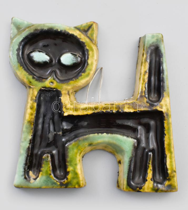 Leírás: Zsolnay pirogránit macska, mázas, jelzés nélkül, számozott, ragasztott, 19x20 cm
