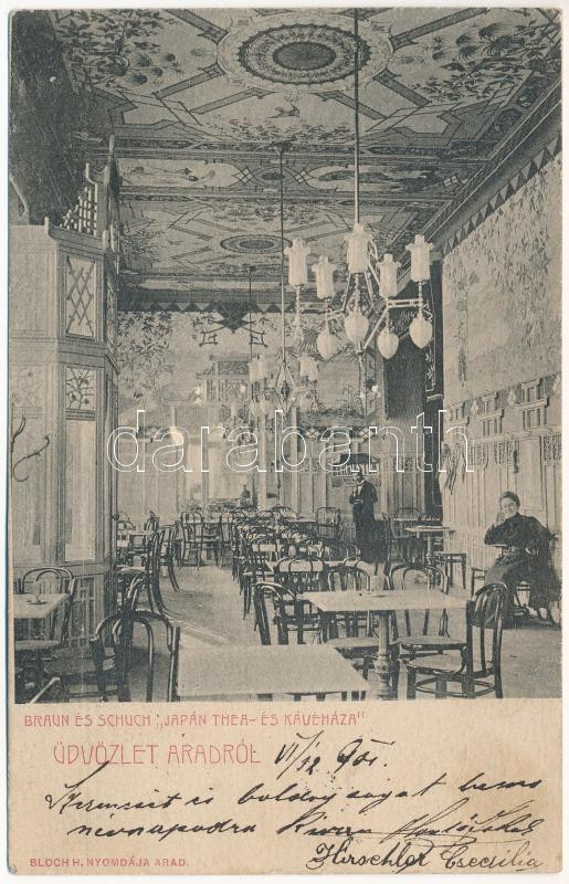 1901 Arad, Braun és Schuch Japán tea és kávéháza, belső pincérrel. Blo... https://www.darabanth.com/hu/447-Gyorsarveres/447.0/Kepeslapok/Erdely~2000006/1901-Arad-Braun-es-Schuch-Japan-tea-es-kavehaza-belso-pincerrel-Bloch-H-kiadasa-Japan~II2964064