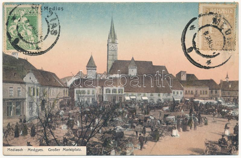1924 Medgyes, Mediasch, Medias; Großer Marktplatz / Nagy paictér / mar... https://www.darabanth.com/hu/447-Gyorsarveres/447.0/Kepeslapok/Erdely~2000006/1924-Medgyes-Mediasch-Medias-GroC39Fer-Marktplatz-Nagy-paicter-market-square-b~II2955735