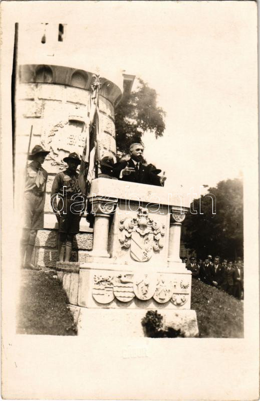 1933 Szeged, Országzászló emlékmű avatási ünnepsége az Árpád téren, cserkészek (1946-ban jelképeitől megfosztották, majd később lebontották). Gábor photo