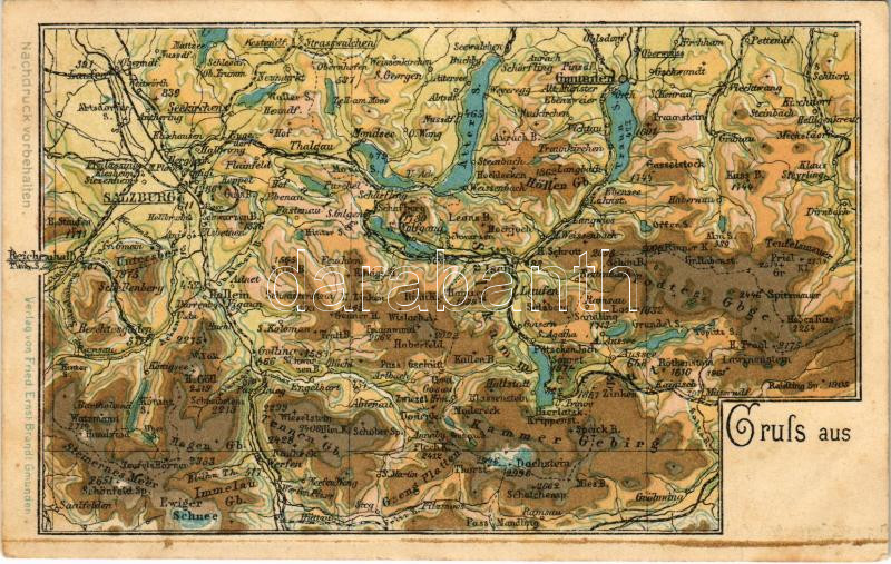 Salzburg, Tirol map. Verlag von Fried, Ernst Brandt (fl) https://www.darabanth.com/hu/447-Gyorsarveres/447.0/Kepeslapok/Terkep~2000082/Salzburg-Tirol-map-Verlag-von-Fried-Ernst-Brandt-fl~II2959678