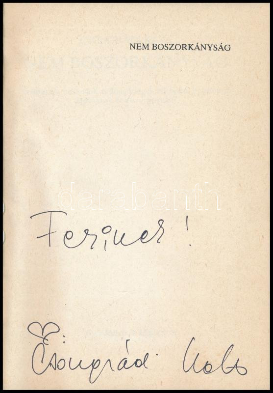 Csongrádi Kata: Nem Boszorkányság. A szerző által dedikált! H.n., 1991... https://www.darabanth.com/hu/447-Gyorsarveres/447.0/Konyvek/Konyvek-Egyeb-ritkasagok~1500027/Csongradi-Kata-Nem-Boszorkanysag-A-szerzo-altal-dedikalt-Hn-1991-Media-Kft-Kiadoi-pa~II2960046