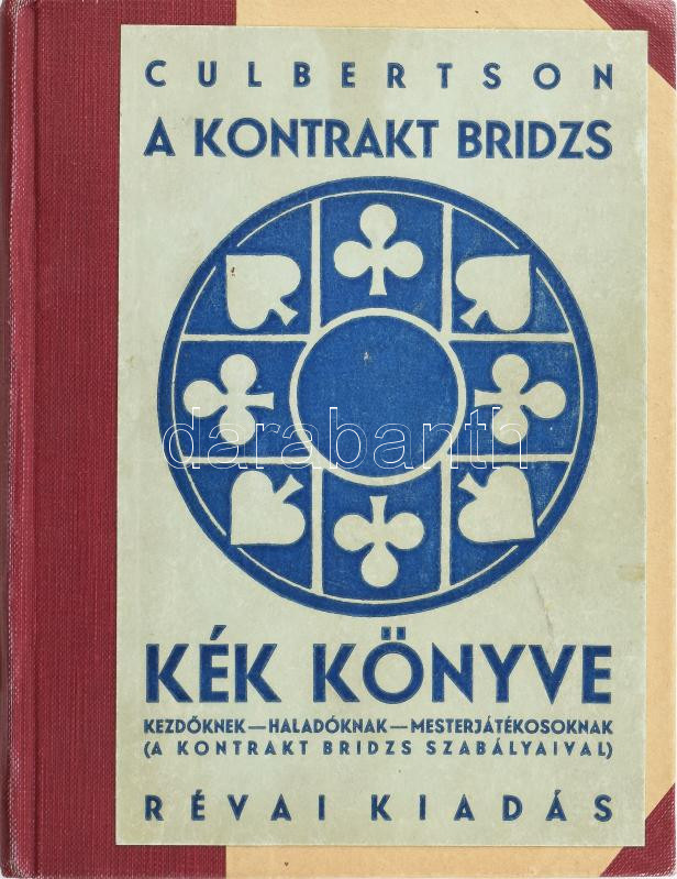 Ely Culbertson: A kontrakt bridzs kék könyve. Magyarrá átdolgozta: Ken... https://www.darabanth.com/hu/447-Gyorsarveres/447.0/Konyvek/Konyvek-Egyeb-ritkasagok~1500027/Ely-Culbertson-A-kontrakt-bridzs-kek-konyve-Magyarra-atdolgozta-Kenedi-Sandor-Bp-en-RC3~II2962876