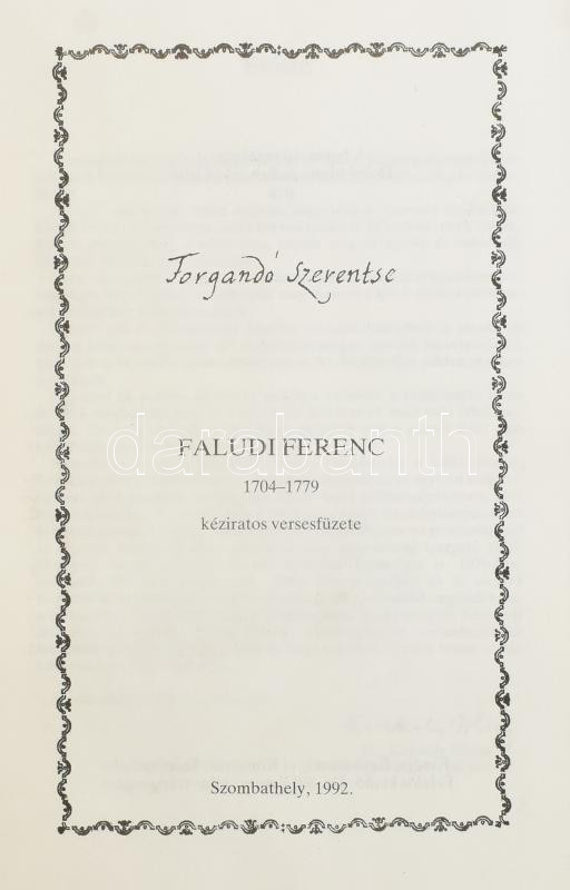 Forgandó szerentse. Faludi Ferenc (1704-1779) kéziratos versesfüzete. Dobri Mária és Kovács Mihály bevezető tanulmányával. Szombathely, 1992, Egyházmegyei Könyvtár. Facsimile kiadás, kísérőfüzettel. Kiadói kartonált papírkötés.