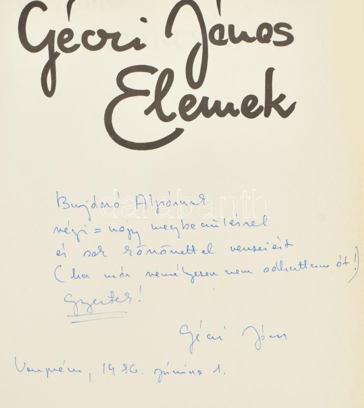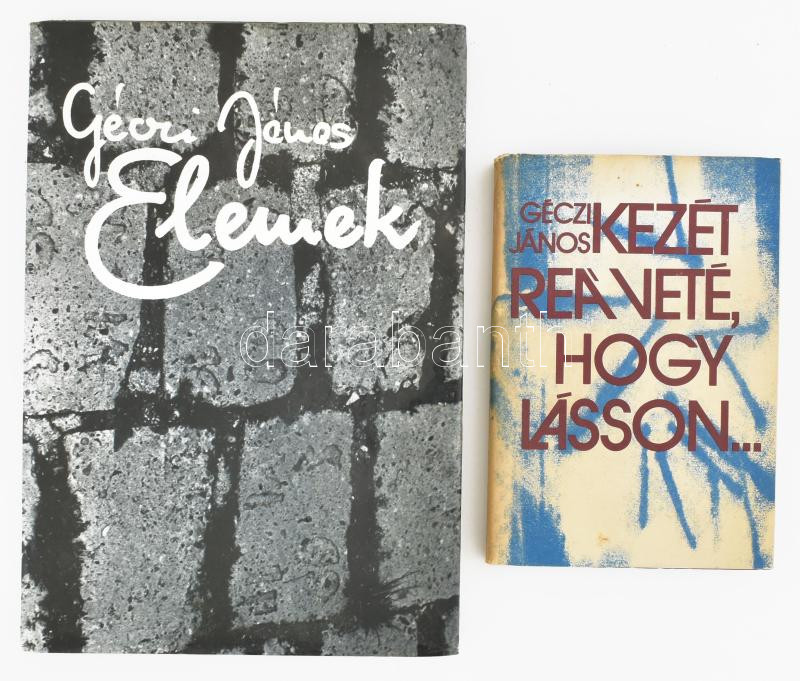 Géczi János 2 műve: A szerző, Géczi János (1954-) József Attila-díjas író és képzőművész által Bujdosó Alpár (1935-2021) költő, mérnök, a Magyar Műhely szerkesztője a magyar avantgarde kiemelkedő alakja részére DEDIKÁLT példány. Kezét reá veté, hogy lásson... Regény. Bp.,1984.,Szépirodalmi. Kiadói kemény-kötés, kiadói papír védőborítóban.; Elemek. Bp.,1986.,Szépirodalmi. Kiadói kemény-kötés, kiadói papír védőborítóban.;