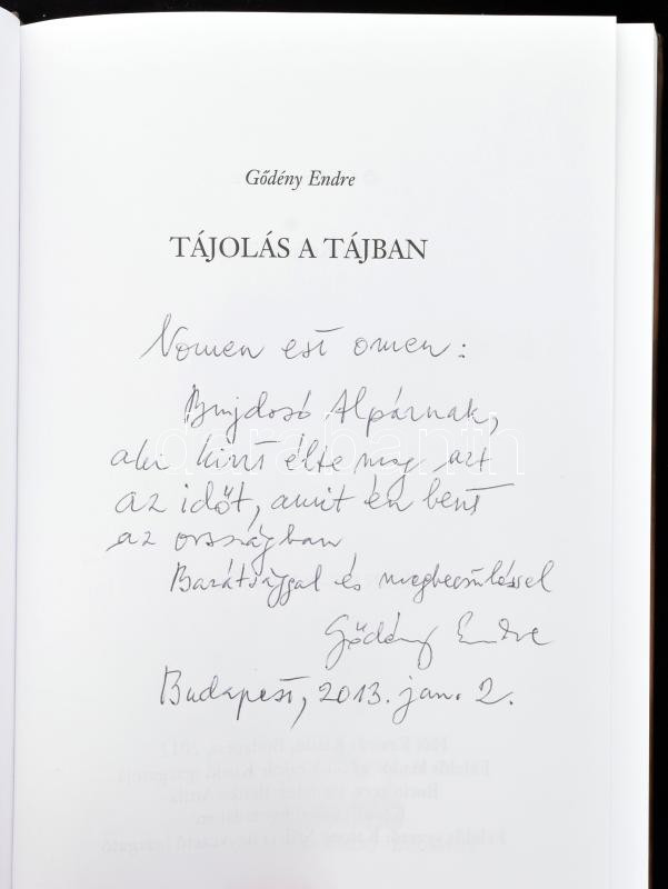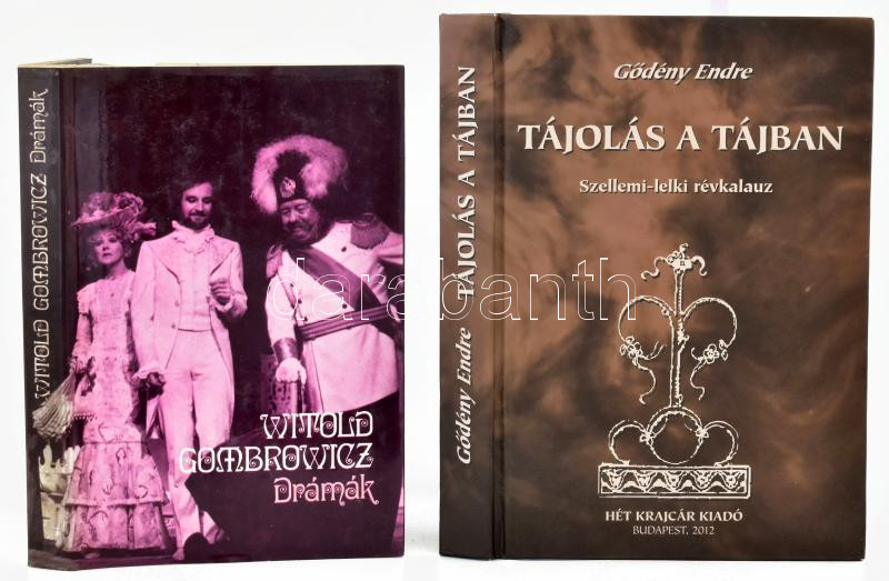 Gődény Endre: Tájolás a tájban. Szellemi - lelki révkalauz. A szerző, Gődény Endre által Bujdosó Alpár (1935-2021) költő, mérnök, a Magyar Műhely szerkesztője a magyar avantgarde kiemelkedő alakja részére DEDIKÁLT példány. Valamint benne Gődény Endre felesége, Emőke és "Bandi" által Bujdosó Alpár és felesége, Zsuzsa részére írt levél. Bp., 2012, Hét Krajcár. Kiadói kartonált papírkötés. + Witold Gombrowicz: Drámák. Ford.: Eörsi István, Pályi András, Spiró György. Pályi András utószavával. Bp., 1984, Európa. Kiadói egészvászon-kötés, kiadói papír védőborítóban. A fordító, és az utószó írója, Pályi András (1942-) író, műfordító által Bujdosó Alpár (1935-2021) költő, mérnök, a Magyar Műhely szerkesztője a magyar avantgarde kiemelkedő alakja részére szóló autográf levéllel, aláírásával.