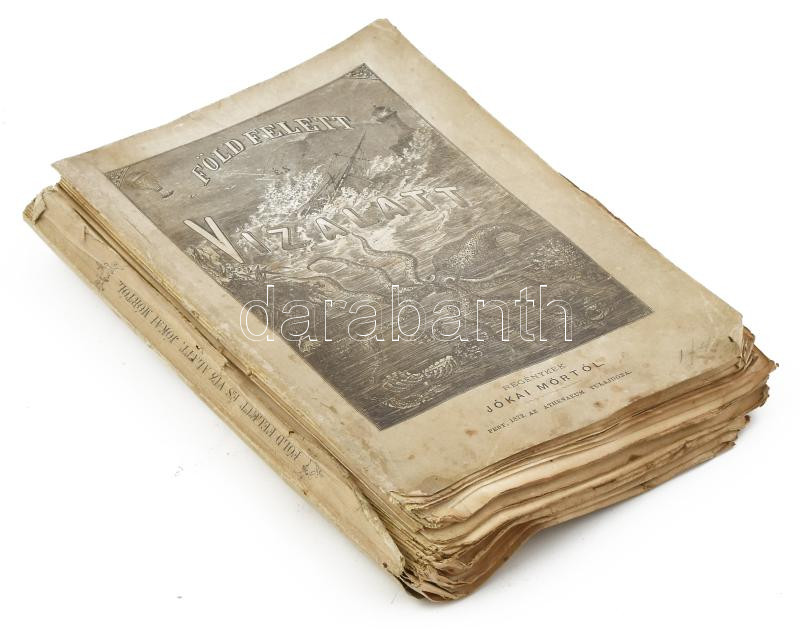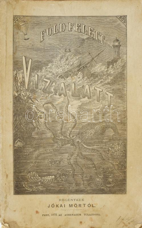 Jókai Mór: Föld felett és víz alatt. Regénykék - -tól. Pest, 1872, Athenaeum, 283 p. Első kiadás. Kiadói papírkötés, rossz, foltos, széteső állapotban.