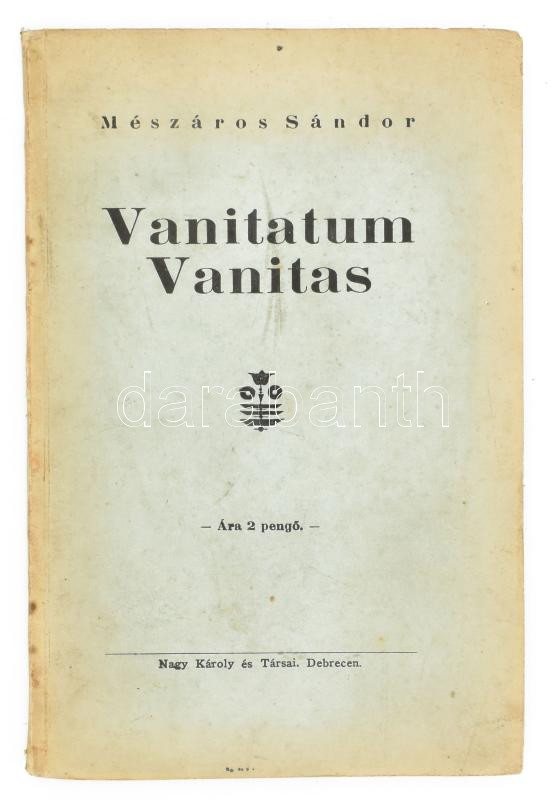 Mészáros Sándor: Vanitatum Vanitas. Debrecen, én., Nagy Károly és Társ... https://www.darabanth.com/hu/447-Gyorsarveres/447.0/Konyvek/Konyvek-Egyeb-ritkasagok~1500027/Meszaros-Sandor-Vanitatum-Vanitas-Debrecen-en-Nagy-Karoly-es-Tarsai-Kiadoi-papirkotC3~II2944735