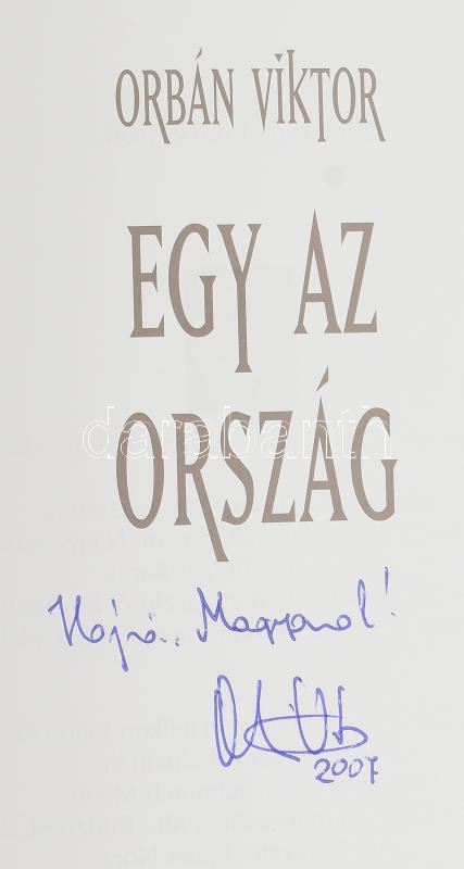 Orbán Viktor: Egy az ország. A szerző, Orbán Viktor (1963-) miniszterelnök által DEDIKÁLT! Budapest, 2007, Helikon. Kiadói kartonált papírkötés, kiadói papírborítóban.