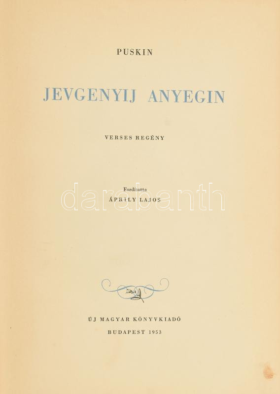 Puskin: Jevgenyij Anyegin. Ford.: Áprily Lajos. Bp., 1953, Új Magyar K...