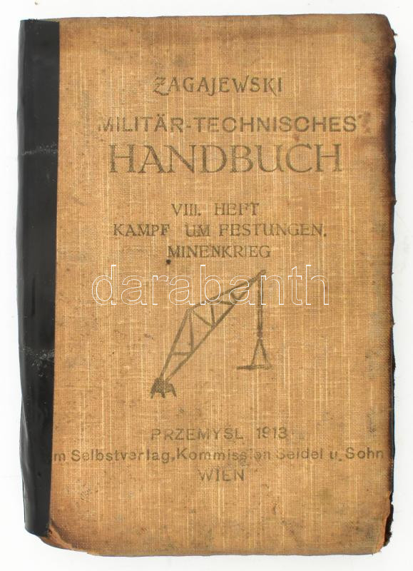 Zagajewski, [Emil]: Militär-Technisches Handbuch. VIII. Heft: Kampf um Festungen. Minenkrieg. Przemysl, 1913, szerzői kiadás (Linz, J. Wimmer-ny.), 280 p. + 1 melléklet. Szövegközi és egészoldalas ábrákkal, táblázatokkal. Német nyelven. Kiadói egészvászon-kötés, kissé viseltes állapotban, sérült, ragasztott gerinccel.