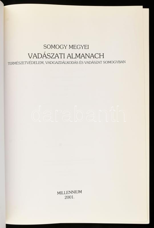 Bod Lajos (szerk.): Millenniumi Vadászati Almanach, Somogy Megye. H.n., 2001, Országos Magyar Vadászkamara Somogy Megyei Területi Szervezete. 415 p. Fekete-fehér és színes képekkel gazdagon illusztrált. Kiadói papírkötés.