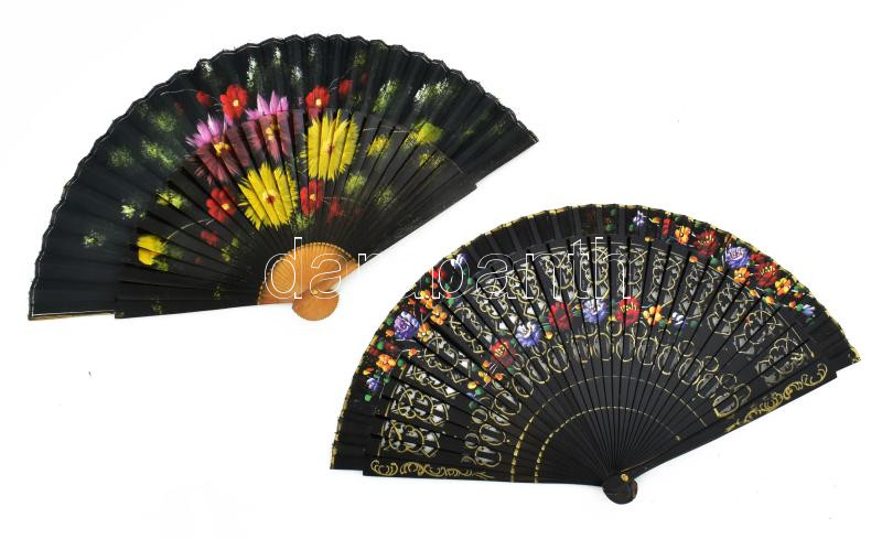 Leírás: 2 darab festett fa legyező