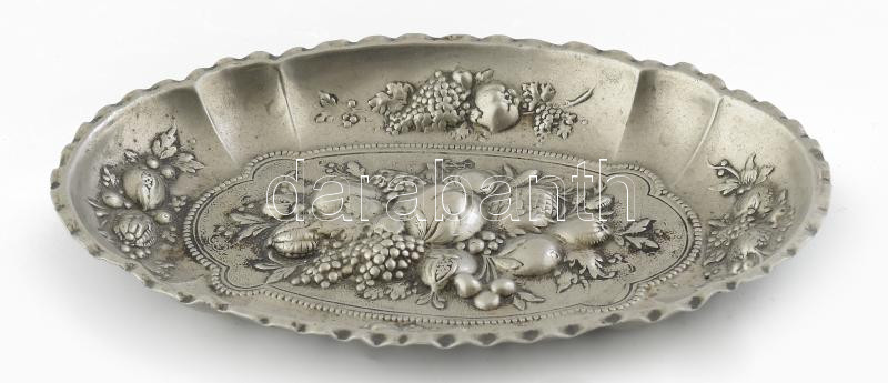 Gyümölcsmintás fém magtálka, jelzés nélkül, 13x8,5 cm https://www.darabanth.com/hu/447-Gyorsarveres/447.0/Mutargy-papirregiseg-egyeb/Bolhapiac~2000103/Gyumolcsmintas-fem-magtalka-jelzes-nelkul-13x8-5-cm~II2964387