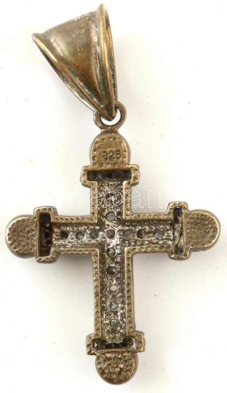 Leírás: Köves fém antik kereszt medál, kopásnyomokkal, h: 5,5 cm